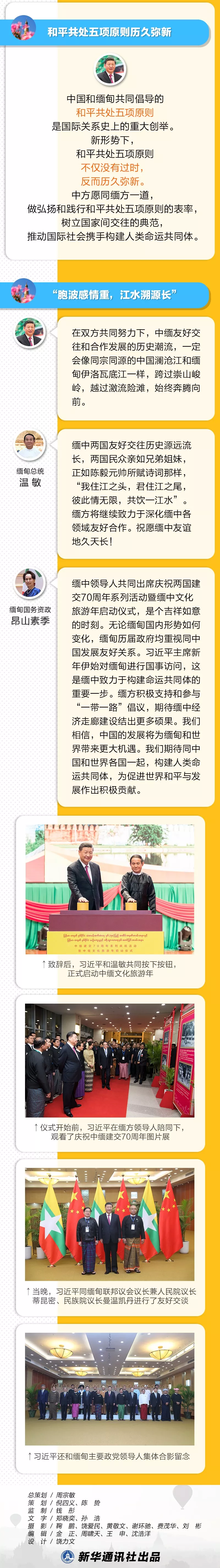1月17日,國家主席習(xí)近平抵達(dá)內(nèi)比都,開始對(duì)緬甸進(jìn)行為期兩天的國事訪問。第一天行程滿滿,其中一項(xiàng)重要活動(dòng)就是,出席中緬建交70周年慶?;顒?dòng)暨中緬文化旅游年啟動(dòng)儀式。習(xí)主席和緬甸總統(tǒng)溫敏、國務(wù)資政昂山素季在儀式上分別致辭,其中信息量滿滿。