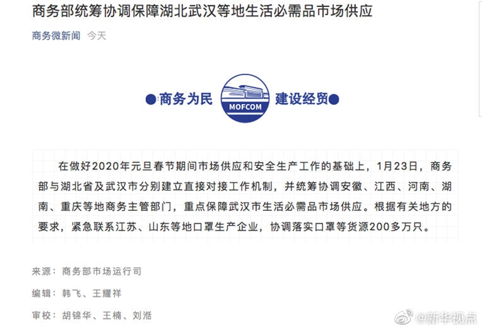 商務(wù)部緊急協(xié)調(diào)落實口罩等貨源200多萬只-新華網(wǎng)