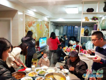 一家人團(tuán)團(tuán)圓圓吃飯(記者曾玲 攝)