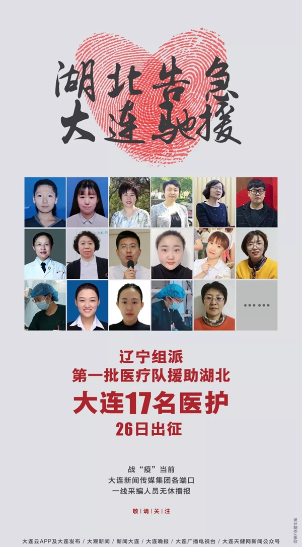記者從大連市衛(wèi)生健康委獲悉,我市確定了17名醫(yī)護(hù)人員參與到遼寧第一批援助湖北應(yīng)對新型冠狀病毒感染的肺炎疫情醫(yī)療隊中,今日早上將出征馳援。