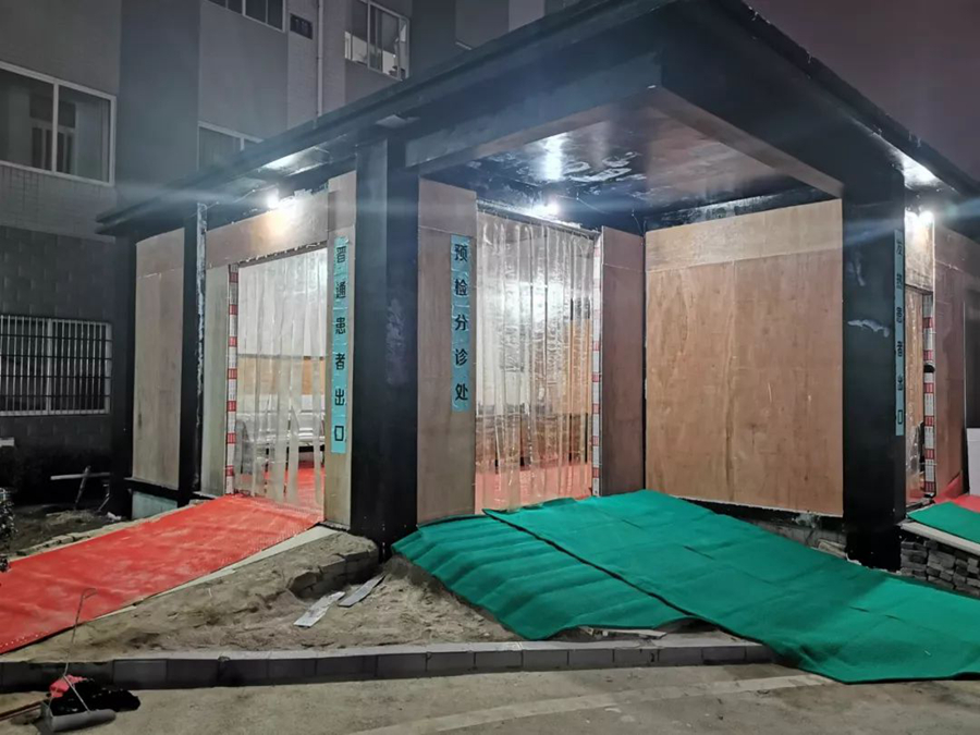 由于春節(jié)期間找不到建筑工人,在黨員帶領(lǐng)下,醫(yī)護人員和職工紛紛上陣,在一天不到的時間內(nèi),在三〇二醫(yī)院搭建起了初見雛形的預檢分診處。