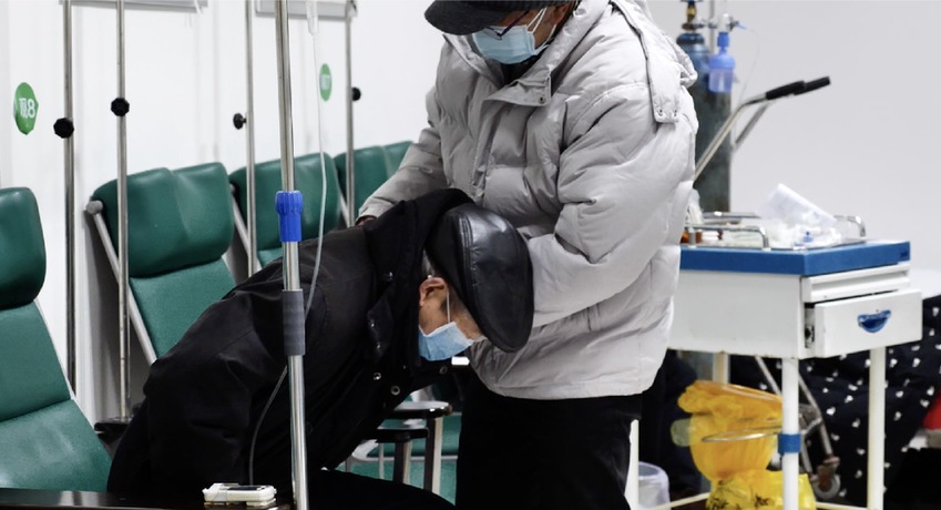 掛著呼吸機老奶奶的孫子孫女過來關心情況,醫(yī)生說:“現在,老奶奶的氧飽和只有60%,正常人需要達到95%以上?!甭犕赆t(yī)生說的話后,孫子孫女回到留觀室,陪在無意識的奶奶身邊。