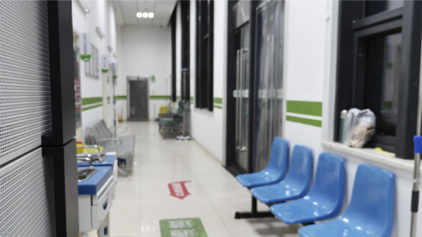接診室區(qū)域還有一名護士站在入口,負責分診,此外,她還需要負責給外邊進來的人開門。