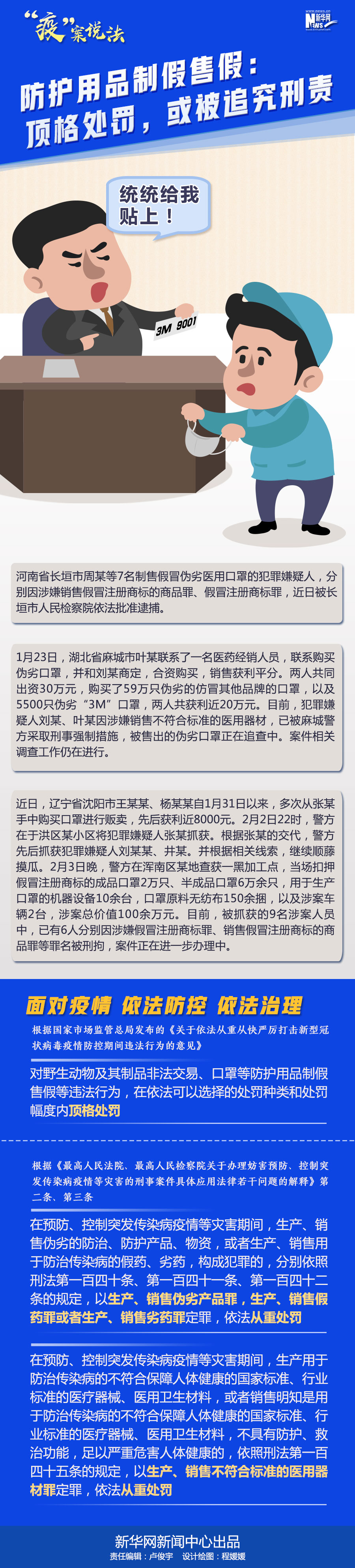 【“疫”案說法】防護(hù)用品制假售假:頂格處罰,或被追究刑責(zé)!-新華網(wǎng)