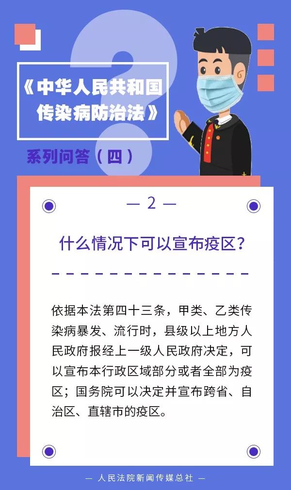 當(dāng)前,新型冠狀病毒感染肺炎疫情蔓延,正嚴(yán)重影響著社會(huì)正常生產(chǎn)生活秩序。傳染病防治關(guān)系到每一個(gè)人的生命健康。面對(duì)傳染病的肆虐,如何利用法律武器來(lái)抗擊疫情?您對(duì)傳染病防治法知多少?小編將為您作出系列介紹。今天推出系列問(wèn)答之四,敬請(qǐng)關(guān)注!