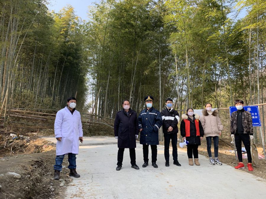 丁永奎(左一)與鎮(zhèn)村干部守在卡點(diǎn),成了一抹最亮的顏色。
