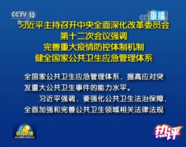 昨天的新聞稿,打破了近年來的慣例——在導(dǎo)語之后、介紹會(huì)議審議通過的若干文件之前,出現(xiàn)了習(xí)近平總書記的6段重要講話內(nèi)容,緊緊圍繞“完善重大疫情防控體制機(jī)制,健全國(guó)家公共衛(wèi)生應(yīng)急管理體系”,提了五個(gè)方面的要求。這體現(xiàn)了此事的重要與緊迫。習(xí)近平總書記針對(duì)這次疫情暴露出來的短板和不足,立足當(dāng)前、放眼長(zhǎng)遠(yuǎn),圍繞這一重大改革主題,作了一次全面動(dòng)員、全面部署。