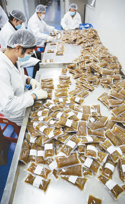 3月2日,湖北武漢一家中藥公司,工人正在為灌裝好的中藥貼上標(biāo)簽。據(jù)悉,該公司在疫情期間,按照國家衛(wèi)生健康委辦公廳和國家中醫(yī)藥管理局辦公室聯(lián)合印發(fā)的《新型冠狀病毒肺炎診療方案(試行第六版)》中推薦的藥方,為武漢市7家醫(yī)院、10個方艙醫(yī)院等單位生產(chǎn)、煎煮和配送中藥湯劑。記者 張武軍攝