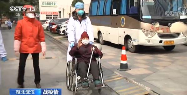 97歲高齡的新冠肺炎患者付桂英老人,幾天前在醫(yī)護人員的陪同下走出武漢協(xié)和醫(yī)院。