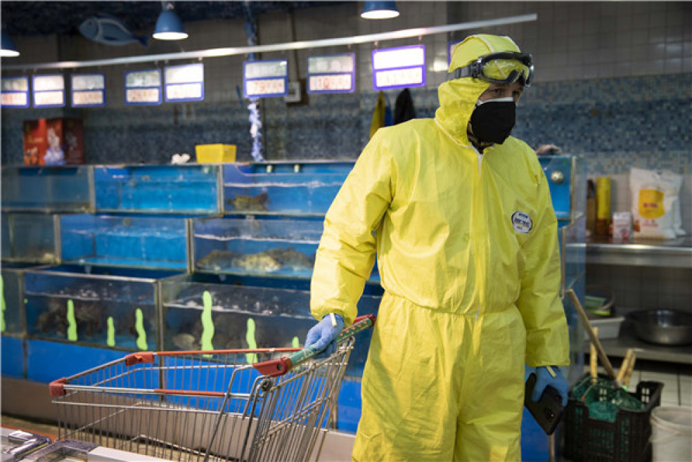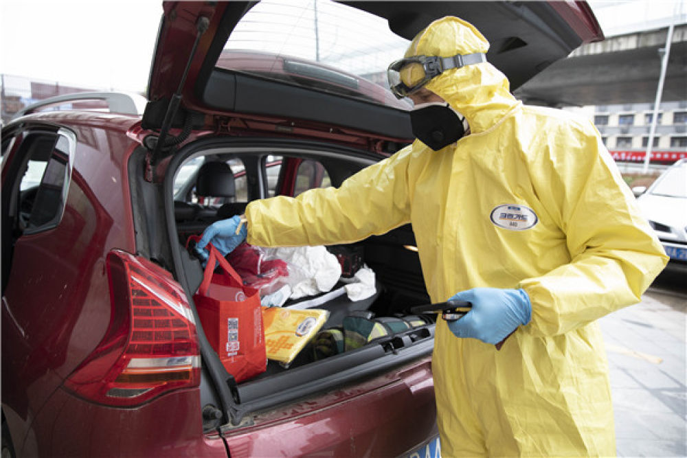 送去消毒水、橡膠手套、防護服、飯菜