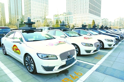 去年年底,在北京經(jīng)濟技術(shù)開發(fā)區(qū),準備進行自動駕駛載人載物測試的車輛等候出發(fā)。新華社發(fā)