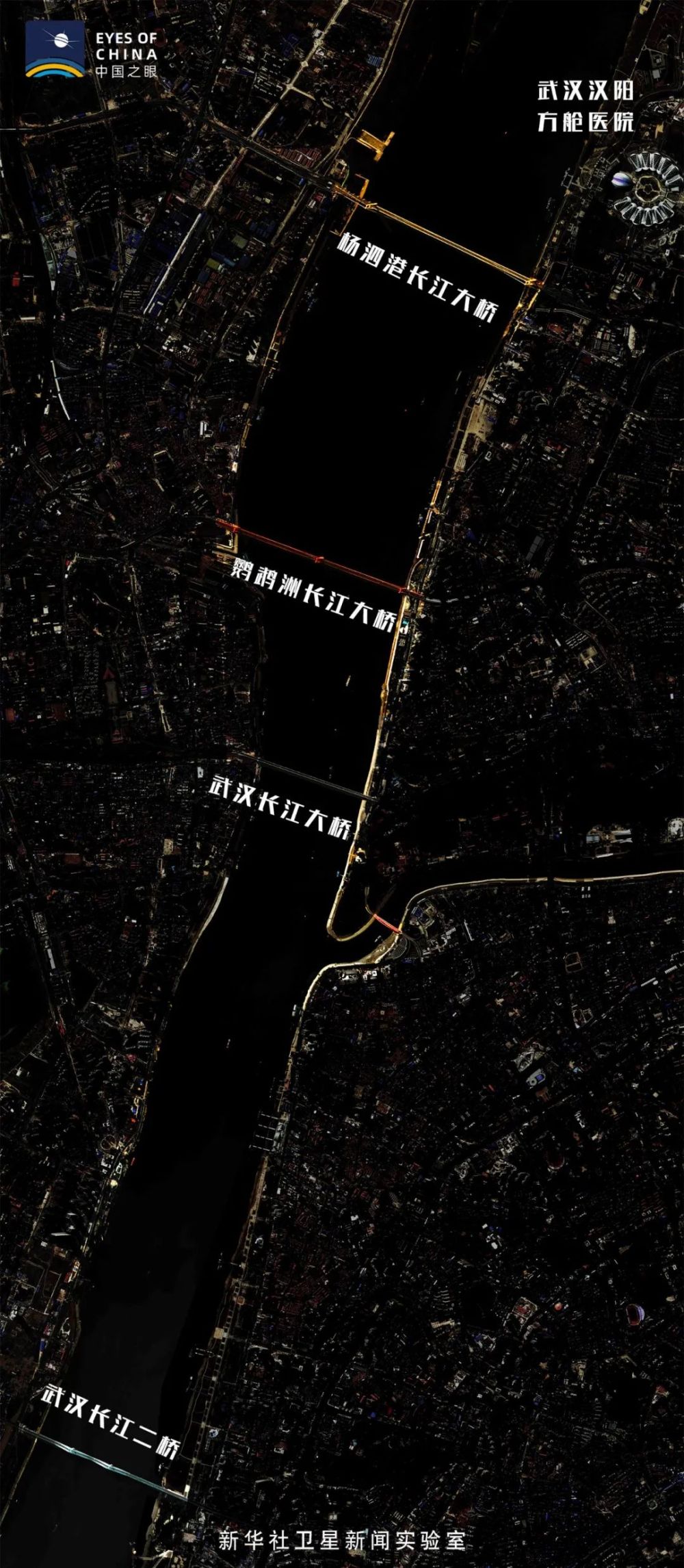 武漢多座長江大橋衛(wèi)星燈光合成效果圖