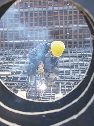 3月6日,工人在位于山西晉中市榆次區(qū)的太焦高鐵晉中特大橋項目施工現(xiàn)場作業(yè)。新華社記者 楊晨光攝