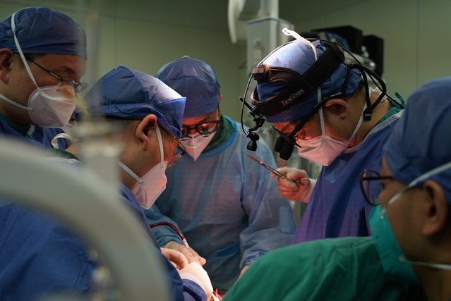隨即,協(xié)和醫(yī)院以心臟大血管外科主任董念國教授、夏家紅教授為首的專家團隊,穿著厚厚的防護服施行心臟移植手術。終于,晚上9點27分,這顆一路狂奔的心臟順利安放至11歲女孩欣欣(化名)的胸腔中,重新有力地跳動起來。
