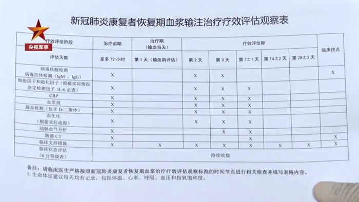 為了對療效進行評估,患者在輸注恢復期血漿后,醫(yī)護人員還會按照《療效評估觀察表》嚴密監(jiān)測相關(guān)指標,包括一般生命體征、氧合改善情況、病毒抗體等,并及時記錄。
