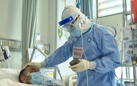 這位患者是一名醫(yī)生,病情非常危重,轉(zhuǎn)入詹慶元負(fù)責(zé)的病區(qū)后,團(tuán)隊(duì)對他悉心治療、照顧,希望這位同行可以盡快康復(fù)。受訪者供圖