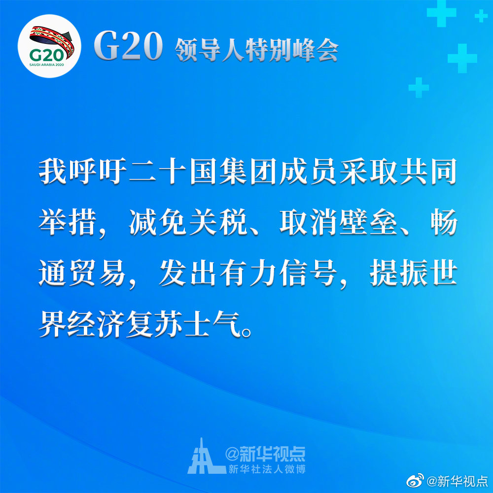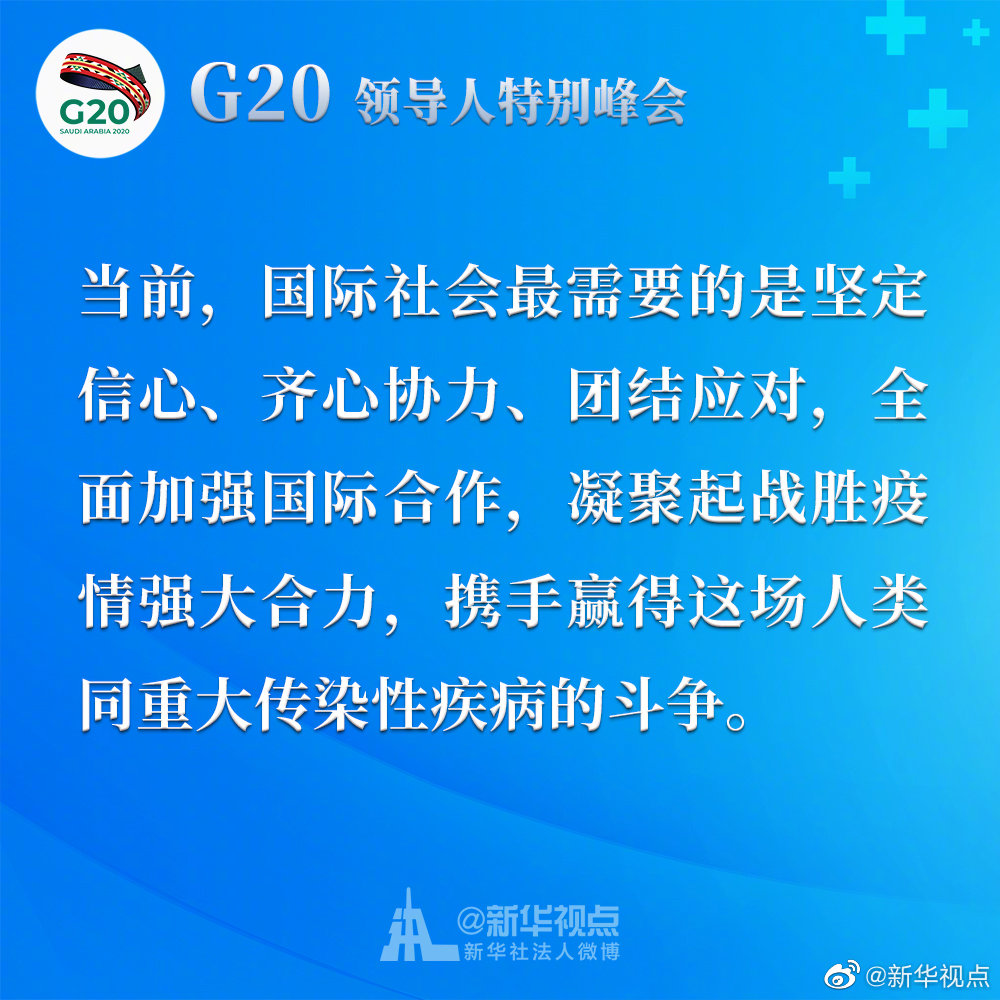 習近平在二十國集團領導人應對新冠肺炎特別峰會上重要講話金句