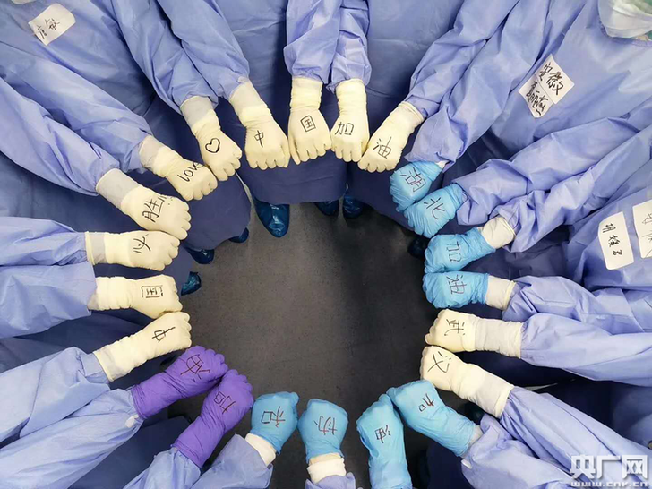 這種無(wú)需開(kāi)口的默契配合、互相幫助常常帶給我無(wú)盡的暖意。工作中每每遇到困難,總有戰(zhàn)友站在身旁,給予鼓勵(lì)、一起解決;數(shù)不清多少次,大家總是在完成自己的工作后,默默地去幫助其他人;更忘不了當(dāng)看著一個(gè)個(gè)病人轉(zhuǎn)出時(shí),隔著厚厚的防護(hù)目鏡下彼此欣悅的眼神……幾十天里,為了戰(zhàn)勝疫情這個(gè)共同的目標(biāo),我們從四面八方相聚在武漢,從陌生人變成同進(jìn)退、共攜手、密不可分的戰(zhàn)友,因?yàn)橛心銈儾⒓缱鲬?zhàn),讓我不再懼怕病毒,讓我更加堅(jiān)信這場(chǎng)戰(zhàn)役我們能贏!