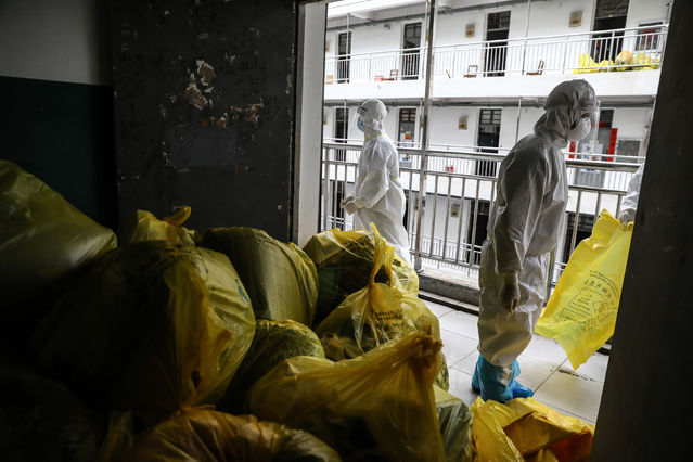 3月27日,武漢軟件工程職業(yè)學院康復(fù)驛站,工作人員正在清理隔離觀察者房間留下的物品,之后宿舍將進行全面消殺。武軟康復(fù)驛站在2月25日投入使用,共分批接納854名康復(fù)隔離人員。新冠肺炎治愈出院患者在此實施為期14天免費的康復(fù)隔離和醫(yī)學觀察,達到醫(yī)學標準后,才能解除隔離返家。中青報·中青網(wǎng)記者 趙迪/攝