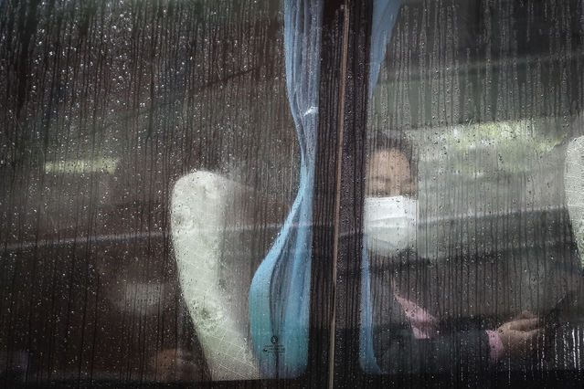 3月27日,武漢軟件工程職業(yè)學院康復(fù)驛站,一名車窗旁的康復(fù)隔離觀察者。中青報·中青網(wǎng)記者 趙迪/攝