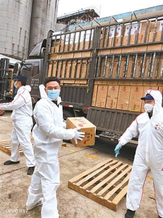 “物資包括口罩、消毒液等醫(yī)療用品,也有能儲(chǔ)存的食物,加起來(lái)總共300多噸?!狈鸬墓ぷ骶褪前衍嚿系臇|西搬下來(lái),運(yùn)到倉(cāng)庫(kù)的指定位置,然后再等相關(guān)機(jī)構(gòu)來(lái)領(lǐng)物資。