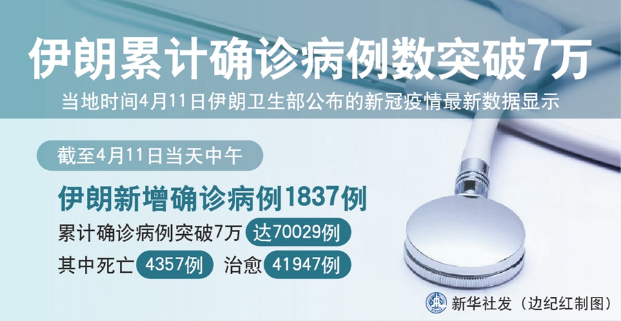 新華社德黑蘭4月11日電(記者陳霖)伊朗衛(wèi)生部11日公布的新冠疫情最新數(shù)據(jù)顯示,截至當(dāng)天中午,伊朗新增確診病例1837例,累計確診病例突破7萬,達(dá)70029例,其中死亡4357例,重癥3987例,治愈41947例。