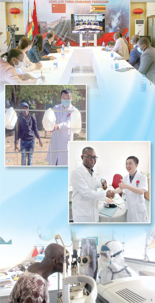圖①:3月18日,在津巴布韋首都哈拉雷,津巴布韋衛(wèi)生部和哈拉雷當(dāng)?shù)蒯t(yī)衛(wèi)官員在中國(guó)駐津巴布韋大使館參加中非新冠肺炎疫情衛(wèi)生專家視頻會(huì)議。