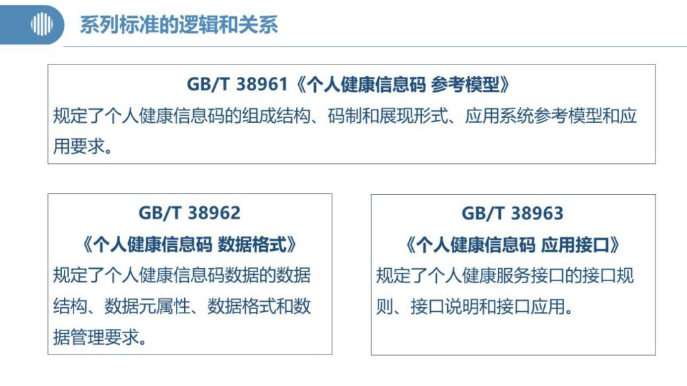 據(jù)了解,健康碼“國標(biāo)”由《參考模型》《數(shù)據(jù)格式》和《應(yīng)用接口》三項標(biāo)準(zhǔn)構(gòu)成??傮w上來看,《參考模型》是框架性標(biāo)準(zhǔn),重在提出“健康碼”應(yīng)用系統(tǒng)和系統(tǒng)間互認(rèn)的技術(shù)模型;《數(shù)據(jù)格式》規(guī)范了個人健康信息數(shù)據(jù),重點在數(shù)據(jù)“原料”層面下功夫;《應(yīng)用接口》則可看作是框架模型下實現(xiàn)系統(tǒng)對接互認(rèn)的操作指導(dǎo)手冊。三項標(biāo)準(zhǔn)互為支撐和補充,共同適用于指導(dǎo)“健康碼”系統(tǒng)的設(shè)計、開發(fā)和系統(tǒng)集成。