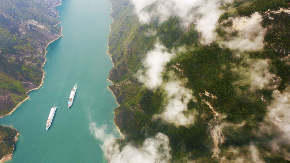 重慶奉節(jié)瞿塘峽一帶景色(無人機(jī)照片,2019年3月28日攝)。新華社記者 王全超 攝