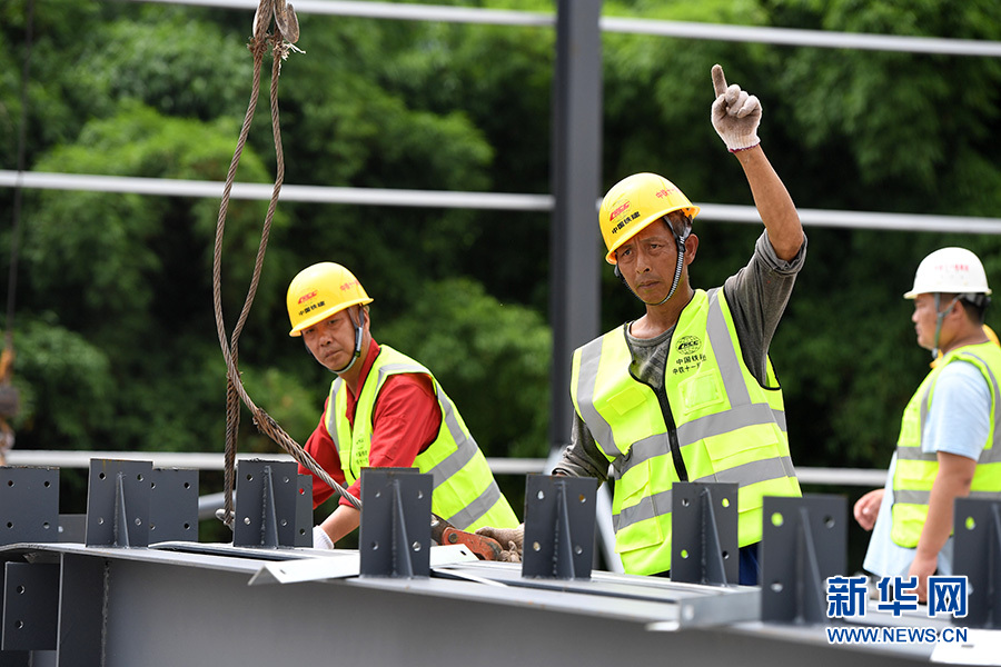 6月9日,工人在位于重慶市巴南區(qū)的渝湘高鐵重慶段建設(shè)工地現(xiàn)場(chǎng)作業(yè)。 新華社記者 唐奕 攝(資料圖)