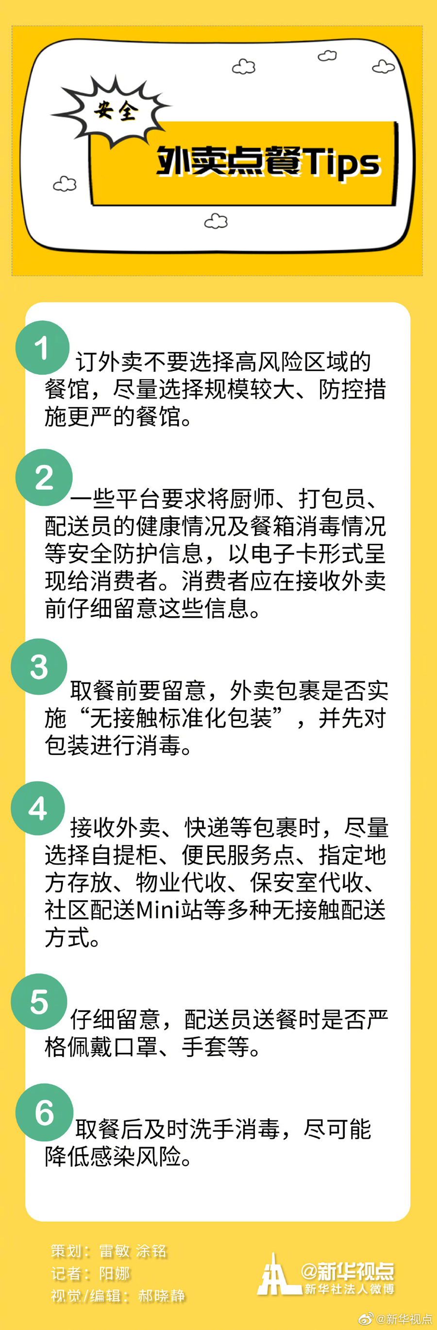 6月23日下午,北京市通報了一例外賣平臺送餐人員感染新冠肺炎的病例。該病例6月1日至17日每日通過“餓了么”平臺接單送餐,平均每天接50單左右。外賣員接觸人員多、暴露風(fēng)險高,大家開始擔(dān)憂,病毒傳播途徑又多了一條。外賣還能點嗎?怎么點外賣、怎么收快遞才能降低被傳染風(fēng)險?小編為你準(zhǔn)備了這份“外賣點餐Tips”,收好!