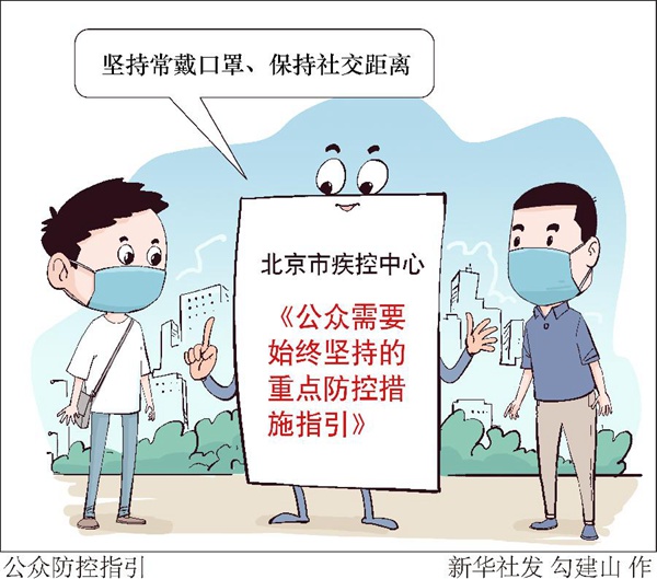 新華社北京6月27日電(記者俠克)北京市疾控中心日前發(fā)布《公眾需要始終堅(jiān)持的重點(diǎn)防控措施指引》,提示應(yīng)堅(jiān)持常戴口罩,保持社交距離,保持手衛(wèi)生,配合做好健康監(jiān)測(cè),做好飲食衛(wèi)生,做好日常清潔和消毒。