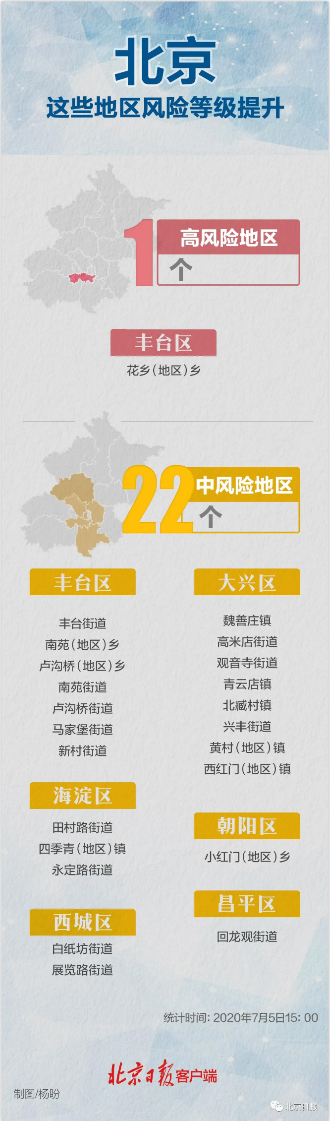 截至目前,本市有22個中風險地區(qū),涉及豐臺區(qū)、大興區(qū)、海淀區(qū)、西城區(qū)、朝陽區(qū)、昌平區(qū)6個區(qū);另有1個高風險地區(qū),是豐臺區(qū)花鄉(xiāng)(地區(qū))鄉(xiāng)。