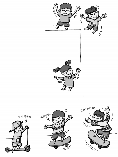 “可我說了沒用,這幫孩子天天交流,平衡車、滑板,回家就要?!蔽湎壬寡裕⒆觽兣时鹊谋澈?,是“能玩的太少”的現(xiàn)狀。尤其是今年開春后,不少家長(zhǎng)都給孩子添置了自行車等設(shè)備?!叭思医o買你不買,孩子心里不舒服?!庇袝r(shí)拗不過孩子,自己只能就范。