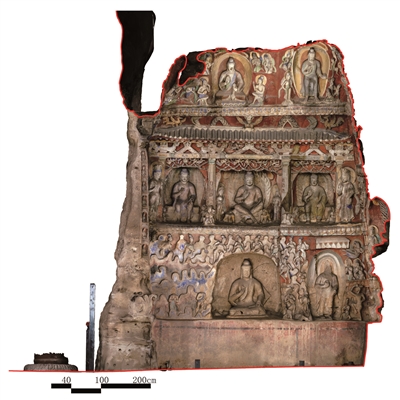 云岡12窟前室西壁正射影像圖,原真的形色信息記錄后的數(shù)字化測(cè)圖