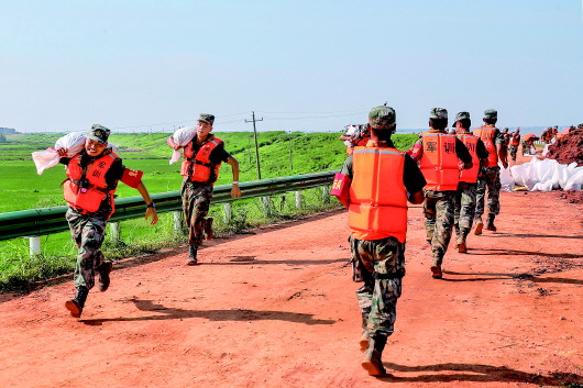 截至14日,江西累計(jì)投入各種抗洪搶險力量128萬多人次,累計(jì)投入機(jī)械裝備8800多臺(套),填堵土石方122萬多立方米。