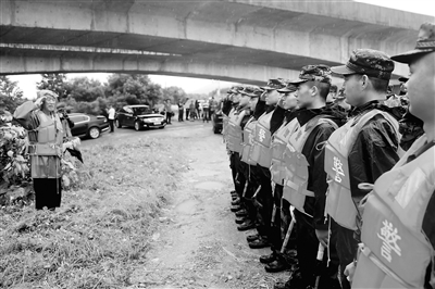 上海交通大學(xué)在讀大學(xué)生馬文斌曾在英模連隊(duì)“紅色尖刀連”服役。近日,從新聞中得知老部隊(duì)奔赴江西抗洪的消息后,他毅然向旅首長遞交請(qǐng)戰(zhàn)書。得到批準(zhǔn)后,馬文斌(左一)從上海奔赴江西,和戰(zhàn)友們并肩作戰(zhàn)。劉 鵬攝