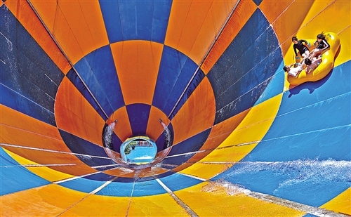 日前,游客在山東煙臺(tái)37度夢(mèng)幻海水樂(lè)園體驗(yàn)“深海龍卷風(fēng)”游樂(lè)項(xiàng)目。孫文潭攝(中經(jīng)視覺(jué))