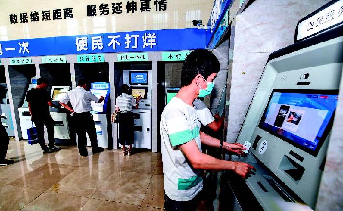 5月28日,市民在浙江省湖州市吳興區(qū)24小時(shí)自助服務(wù)大廳通過綜合自助機(jī)辦理相關(guān)業(yè)務(wù) 徐昱攝/本刊