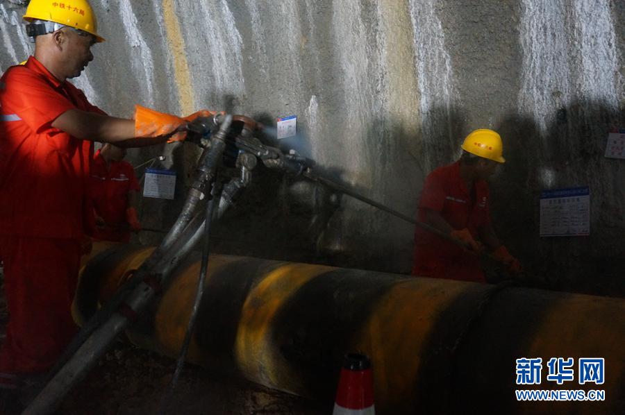 8月19日,龍南隧道順利貫通。圖為施工現(xiàn)場。新華網記者劉瓊 攝