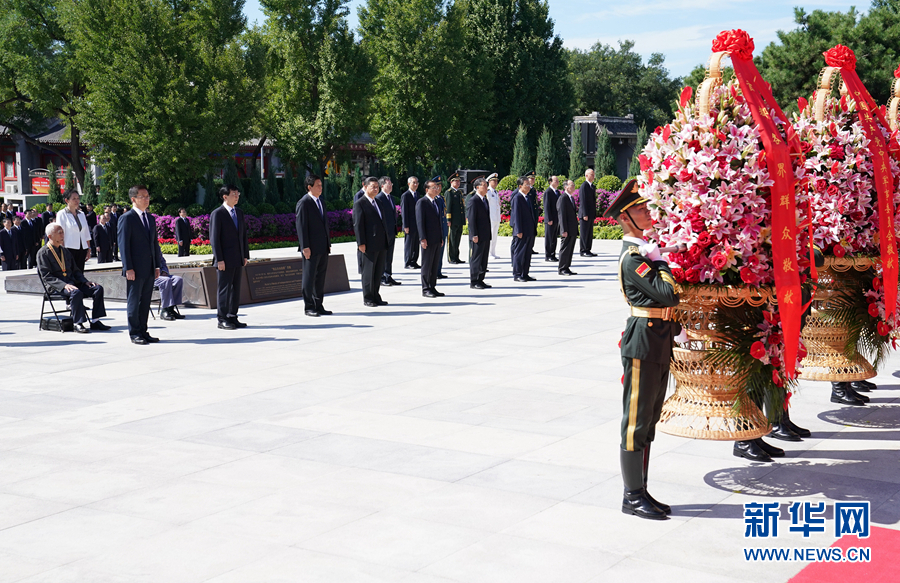 9月3日上午,習(xí)近平、李克強(qiáng)、栗戰(zhàn)書、汪洋、王滬寧、趙樂際、韓正、王岐山等黨和國家領(lǐng)導(dǎo)人來到中國人民抗日戰(zhàn)爭紀(jì)念館,出席紀(jì)念中國人民抗日戰(zhàn)爭暨世界反法西斯戰(zhàn)爭勝利75周年向抗戰(zhàn)烈士敬獻(xiàn)花籃儀式。 新華社記者 丁海濤 攝