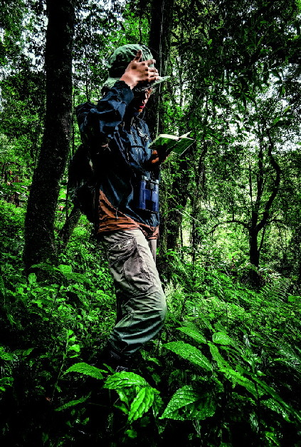 就是在這次調(diào)查過(guò)程中,飯飯那雙登山靴“本來(lái)好端端的一部分被永遠(yuǎn)留在了山上”。一路手腳并用、氣喘吁吁,還要時(shí)刻提防被樹(shù)枝啪啪打臉,飯飯覺(jué)得山里“完全沒(méi)有路”;讓她驚嘆的是,身邊的祝常悅居然可以在密林深處走得“一陣清風(fēng)如履平地”,還有精力隨手拍下一條盤(pán)亙?cè)诼淙~上的竹葉青蛇。飯飯還沒(méi)想明白,常悅站長(zhǎng)這種“地上無(wú)路,腳下有路”的境界是怎么“修煉”出來(lái)的。