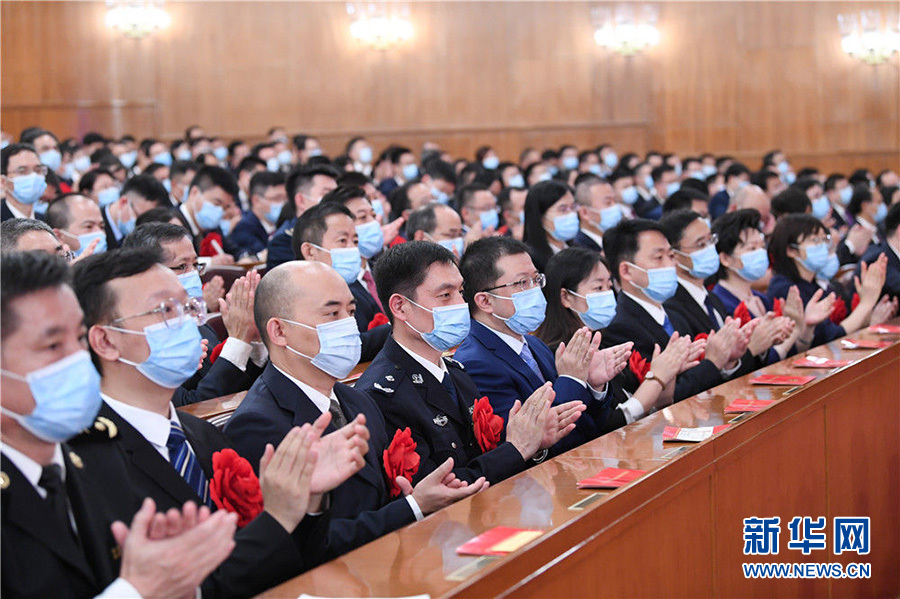隨后,大會對全國抗擊新冠肺炎疫情先進個人和先進集體、全國優(yōu)秀共產(chǎn)黨員和全國先進基層黨組織進行了表彰。受表彰的個人和集體代表胸戴大紅花,走上主席臺,從習(xí)近平等黨和國家領(lǐng)導(dǎo)人手中接過獎?wù)?、證書、獎牌。