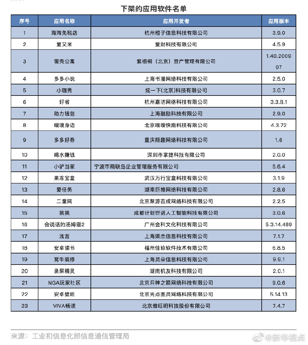 工信部14日消息,工信部此前向社會(huì)通報(bào)了101家存在侵害用戶權(quán)益行為APP企業(yè)的名單。截至目前,經(jīng)第三方檢測機(jī)構(gòu)核查復(fù)檢,尚有海淘免稅店、愛又米等23款A(yù)PP未按要求完成整改。根據(jù)相關(guān)規(guī)定,工信部組織對(duì)這些APP進(jìn)行下架。(記者 張辛欣) ????