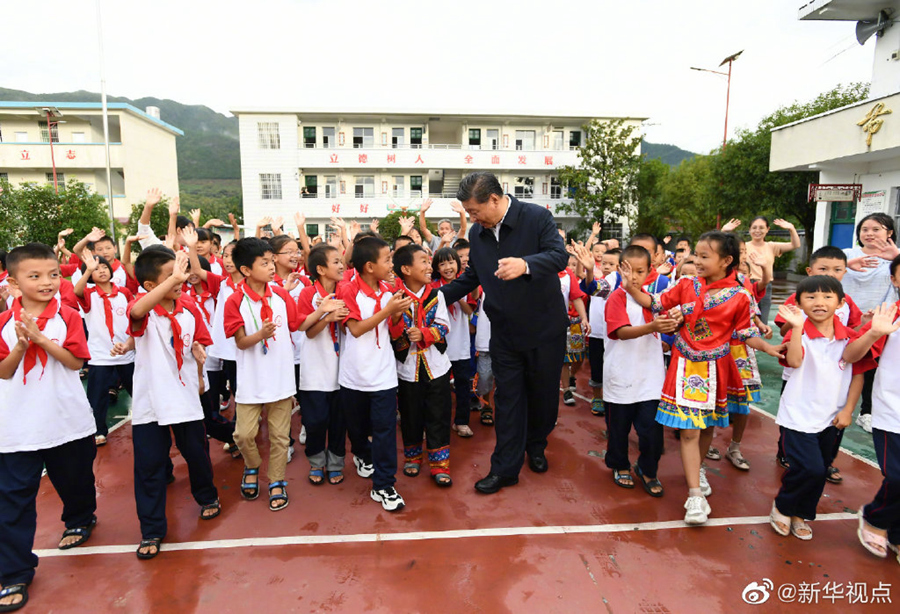 16日下午,正在湖南考察調(diào)研的習(xí)近平總書記來(lái)到郴州市汝城縣文明瑤族鄉(xiāng)第一片小學(xué),走進(jìn)四年級(jí)教室,同正在上思政課的同學(xué)們親切交流。同學(xué)們紛紛向習(xí)爺爺分享自己熟悉的長(zhǎng)征故事,習(xí)近平聽了十分高興,連夸“講得好”。他說(shuō),作為“半條被子的故事”發(fā)生地,紅色基因要在你們身上得到體現(xiàn)。革命事業(yè)要一代一代傳下去,中華民族偉大復(fù)興將在今天的青少年一代手中實(shí)現(xiàn)。他把同學(xué)們比作“小樹苗”,將來(lái)會(huì)長(zhǎng)成中華民族的參天大樹,希望同學(xué)們好好學(xué)習(xí)、天天向上,努力成長(zhǎng)為社會(huì)主義建設(shè)者和接班人。 (文字記者張曉松、朱基釵 攝影記者李學(xué)仁、謝環(huán)馳)?
