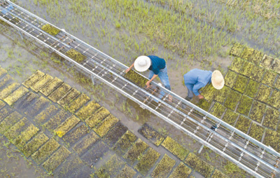 機(jī)械化育秧的推廣,大大降低了農(nóng)民的勞動(dòng)強(qiáng)度,育秧質(zhì)量也顯著提升?!艾F(xiàn)在都是精準(zhǔn)化育種,一穴控制在4—6粒,基本同期發(fā)芽。20天左右,秧苗長(zhǎng)到八九厘米,就可以移栽了?!敝x成富說(shuō)。水稻栽插,講究“淺、勻、直、穩(wěn)”,“流水線育秧出來(lái)的苗又齊又壯,為機(jī)插秧提供了有利條件?!?/p>