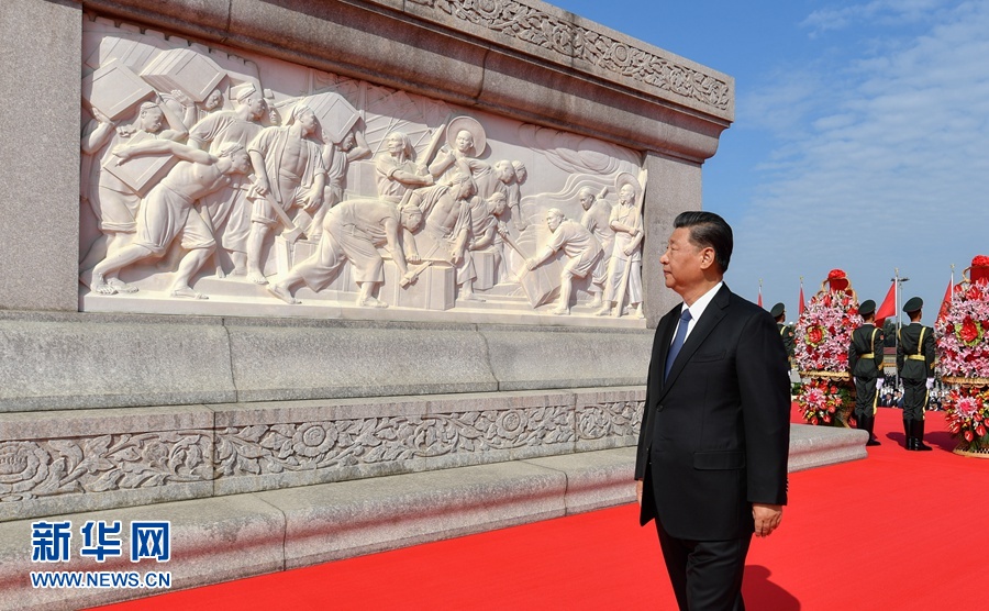 9月30日上午,黨和國(guó)家領(lǐng)導(dǎo)人習(xí)近平、李克強(qiáng)、栗戰(zhàn)書、汪洋、王滬寧、趙樂際、韓正、王岐山等來到北京天安門廣場(chǎng),出席烈士紀(jì)念日向人民英雄敬獻(xiàn)花籃儀式。這是習(xí)近平瞻仰人民英雄紀(jì)念碑。 新華社記者 岳月偉 攝