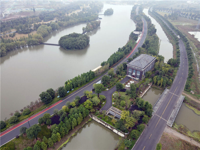 這是10月16日拍攝的安徽省潁上縣沿淮水利生態(tài)景區(qū)——五里湖濕地公園(無(wú)人機(jī)照片)。新華社記者 劉軍喜 攝