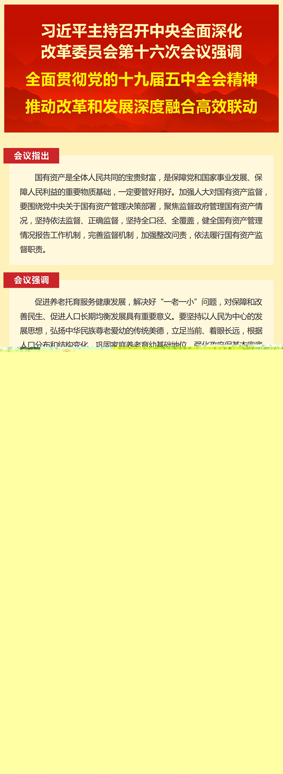 新華社北京11月2日電? 中共中央總書記、國(guó)家主席、中央軍委主席、中央全面深化改革委員會(huì)主任習(xí)近平11月2日下午主持召開中央全面深化改革委員會(huì)第十六次會(huì)議并發(fā)表重要講話。他強(qiáng)調(diào),“十三五”以來,全面深化改革取得重大突破。“十四五”時(shí)期我國(guó)將進(jìn)入新發(fā)展階段,改革又到了一個(gè)新的關(guān)頭。貫徹黨的十九屆五中全會(huì)精神,要繼續(xù)把握好改革和發(fā)展的內(nèi)在聯(lián)系,深刻認(rèn)識(shí)我國(guó)社會(huì)主要矛盾變化帶來的新特征新要求,深刻認(rèn)識(shí)錯(cuò)綜復(fù)雜國(guó)際環(huán)境帶來的新矛盾新挑戰(zhàn),深刻認(rèn)識(shí)全面深化改革的階段性新特點(diǎn)新任務(wù),緊扣貫徹新發(fā)展理念、推進(jìn)高質(zhì)量發(fā)展、構(gòu)建新發(fā)展格局,緊盯解決突出問題,提高改革的戰(zhàn)略性、前瞻性、針對(duì)性,使改革更好對(duì)接發(fā)展所需、基層所盼、民心所向,推動(dòng)改革和發(fā)展深度融合、高效聯(lián)動(dòng)。