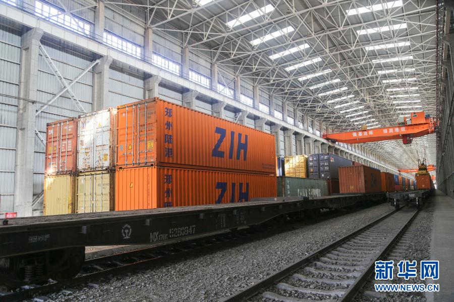新疆阿拉山口站綜合換裝庫(三區(qū))內等待換裝的集裝箱(9月29日攝)。新華社發(fā)(于蘇甫·艾尼 攝)